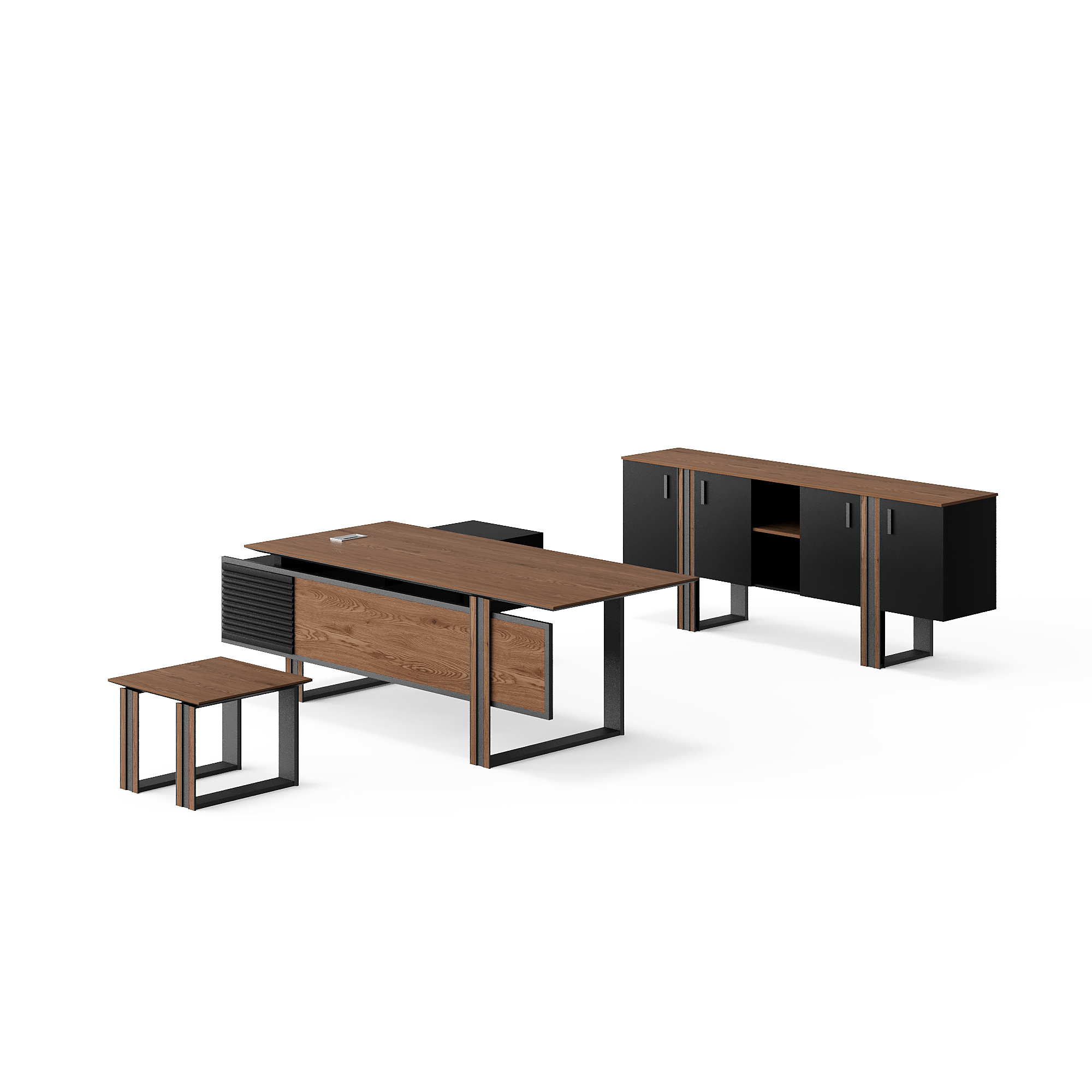 L-shaped table with cabinet and tea table