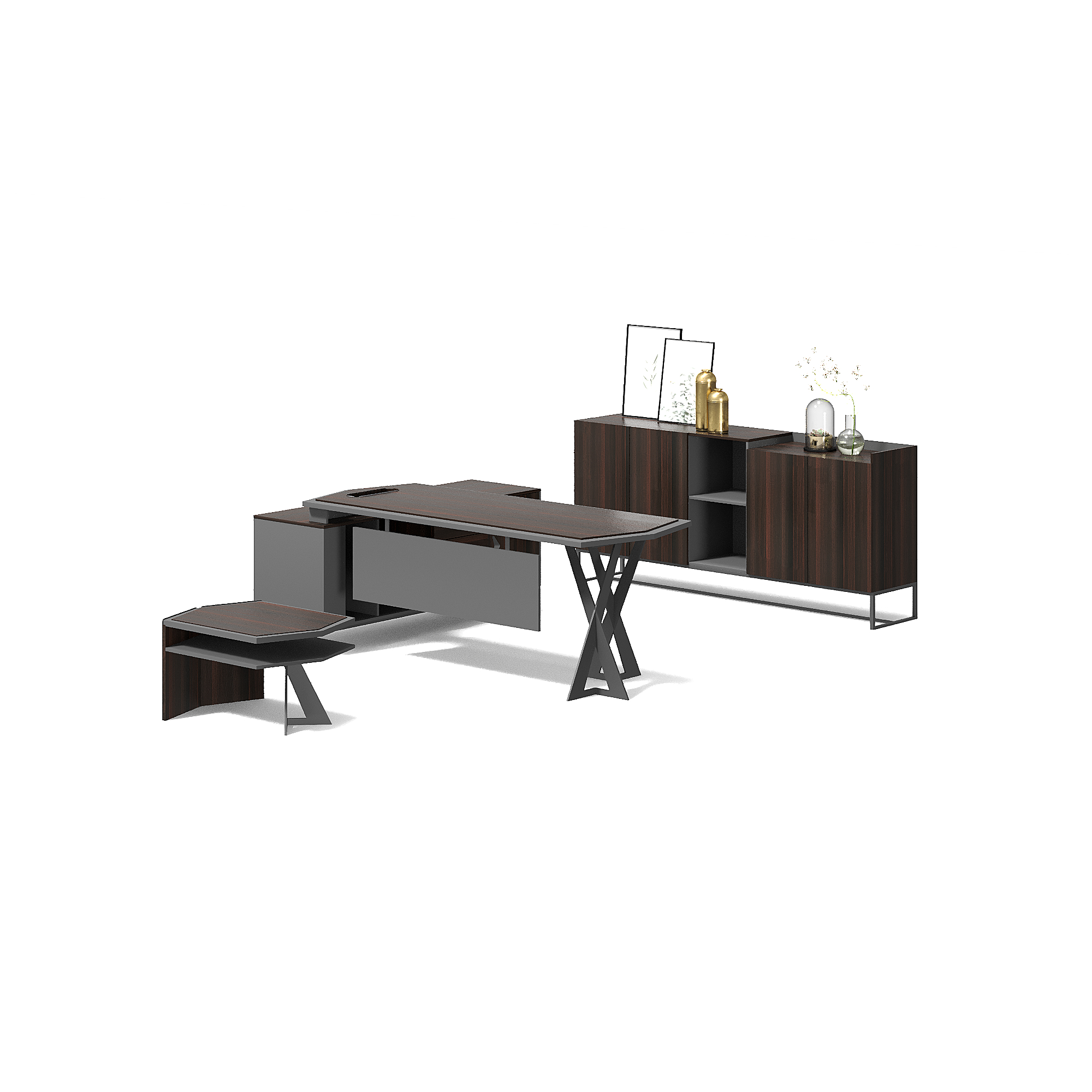 Office table with cabinet and coffee table